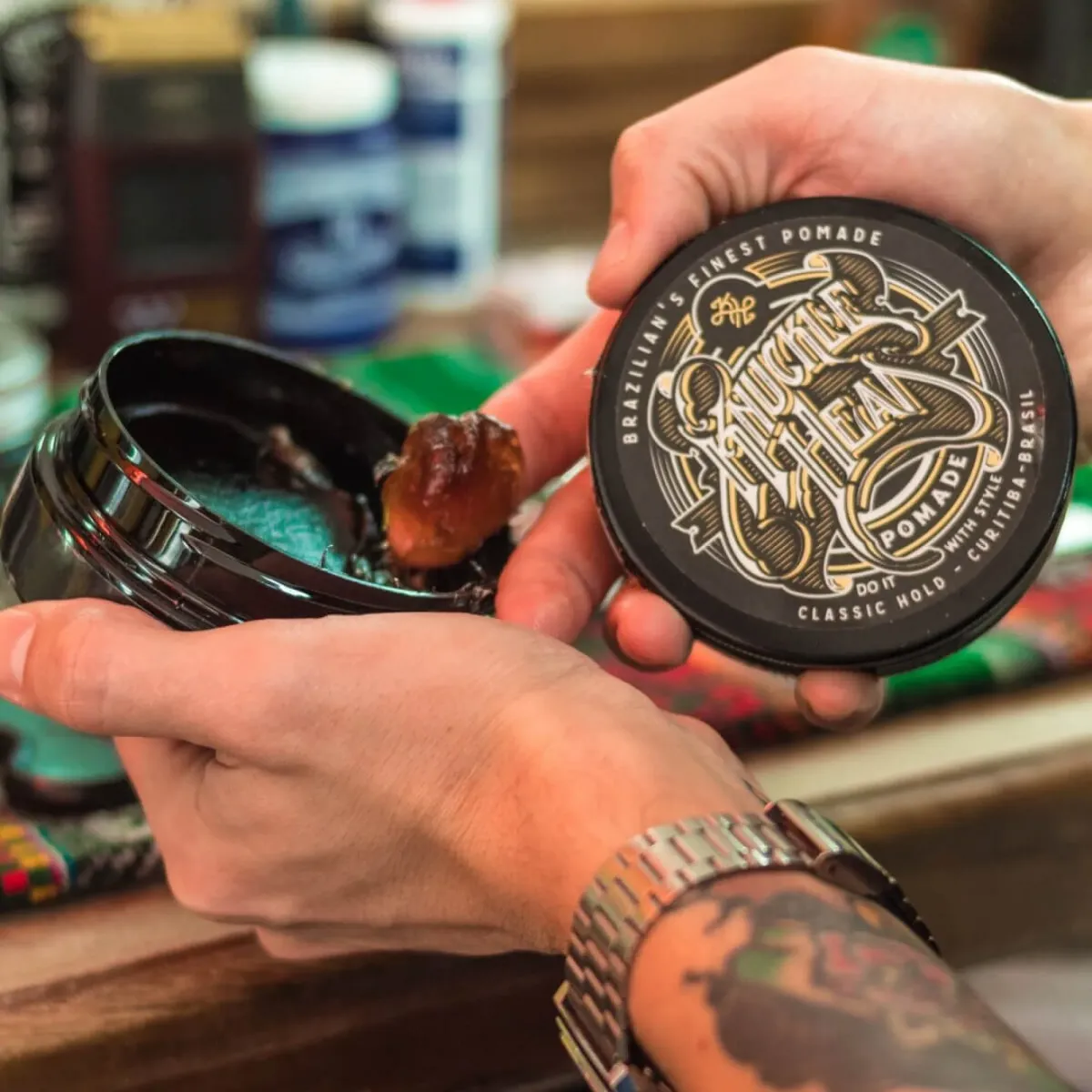 “Os produtos que nossos barbeiros usam, agora no seu dia a dia.